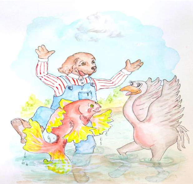In the story Flying is for the Birds, Carpie and Lashley made a terrible mistake while playing a game with the little minnow. Lashley swallowed the minnow by accident. The two friends were so shocked and afraid. When the other minnows came looking, both Carpie and Lashley lied and pretended they didn’t know anything.